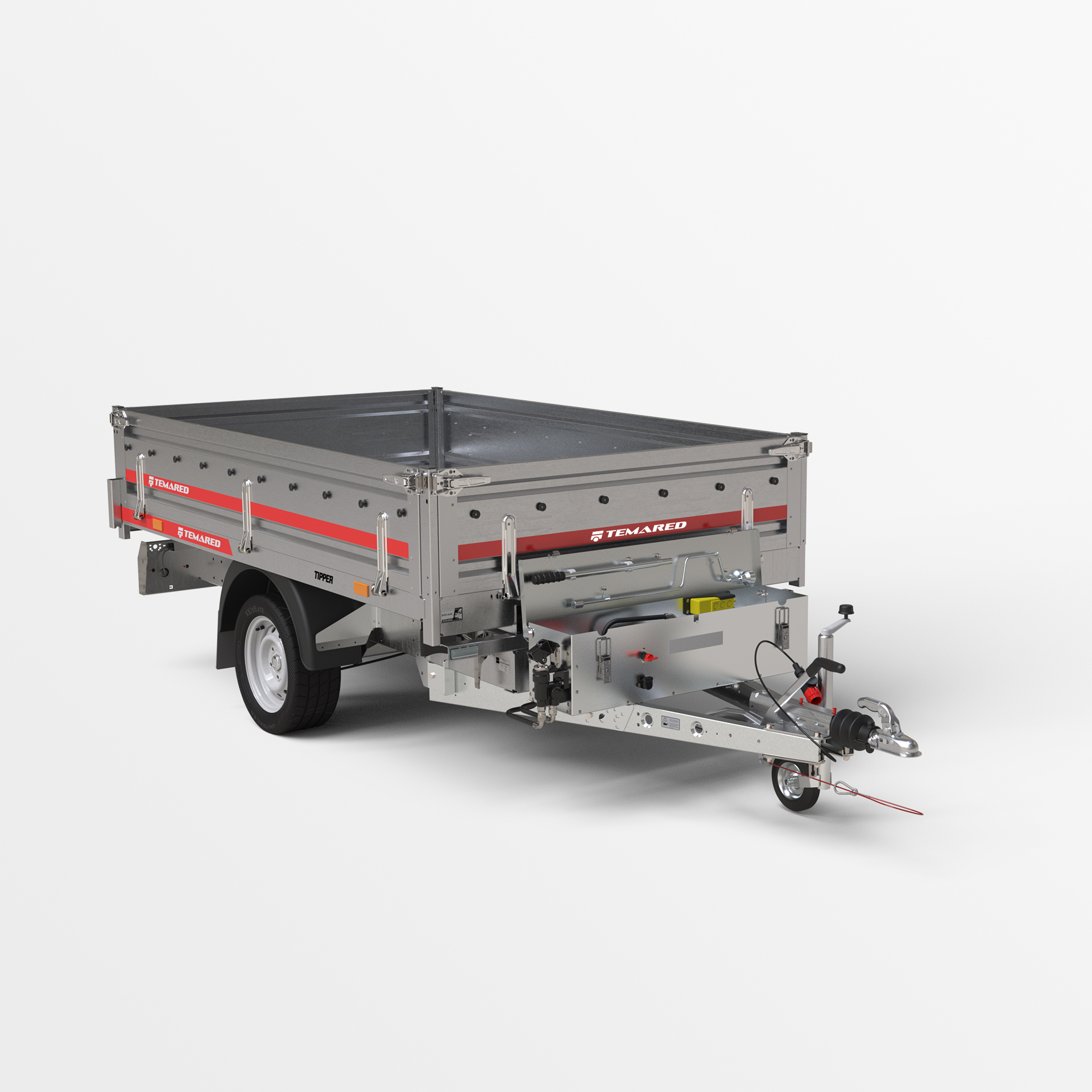 Dieses Kipper verfügt über eine Rahmenkonstruktion mit geschlossenem Profil, was seine Stabilität erhöht. Er verwendet einen 5-stufigen Zylinder, der einen größeren Kippwinkel (bis zu 55°) ermöglicht. Alle Bordwände können geöffnet und abgenommen werden. Das Modell verfügt außerdem über einen Stahlboden.