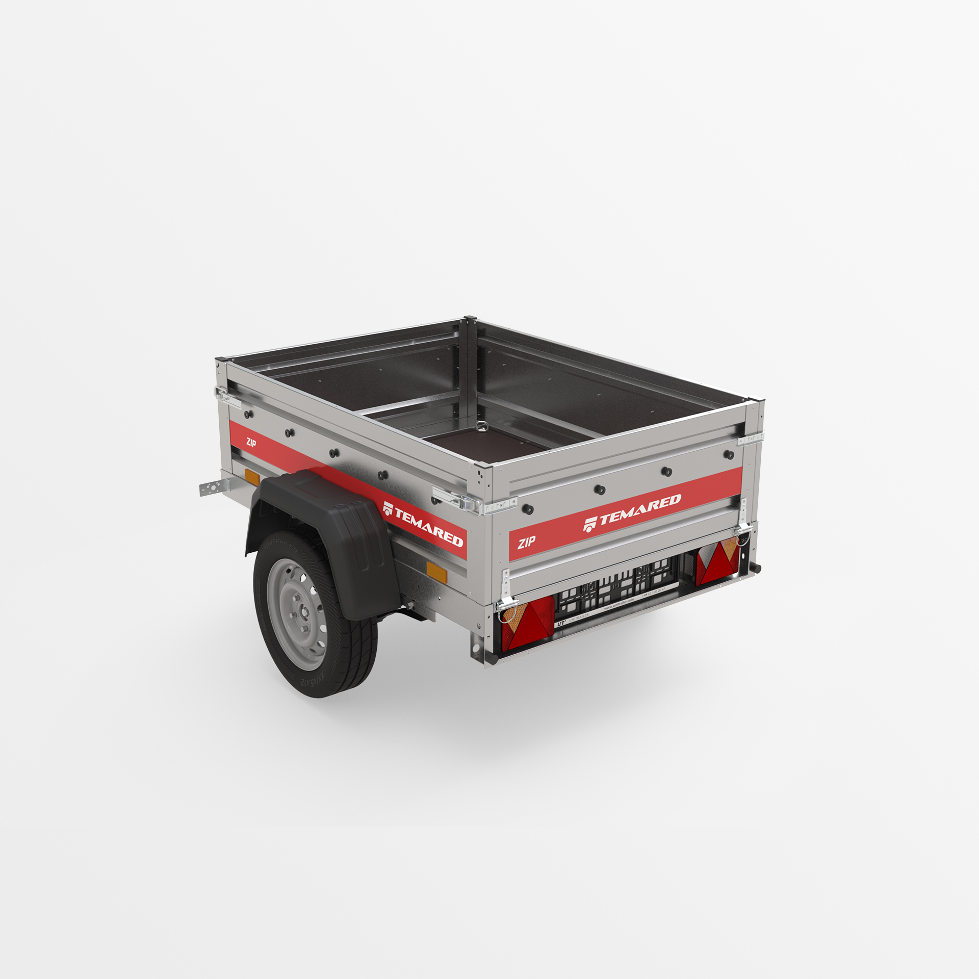 Transportanhänger, der für den sicheren Transport verschiedener Lasten konzipiert wurde. Mit einer 40 cm hohen Bordwand sowie klappbaren vorderen und hinteren Bordwänden wird das Be- und Entladen schnell und bequem. Die geschweißte Konstruktion sorgt für hohe Haltbarkeit, während die kippbare Deichsel den Nutzungskomfort verbessert. Anschläge am hinteren Rahmen ermöglichen eine stabile Positionierung des Anhängers auf der hinteren Bordwand, sodass er beim Lagern nur wenig Platz benötigt.
