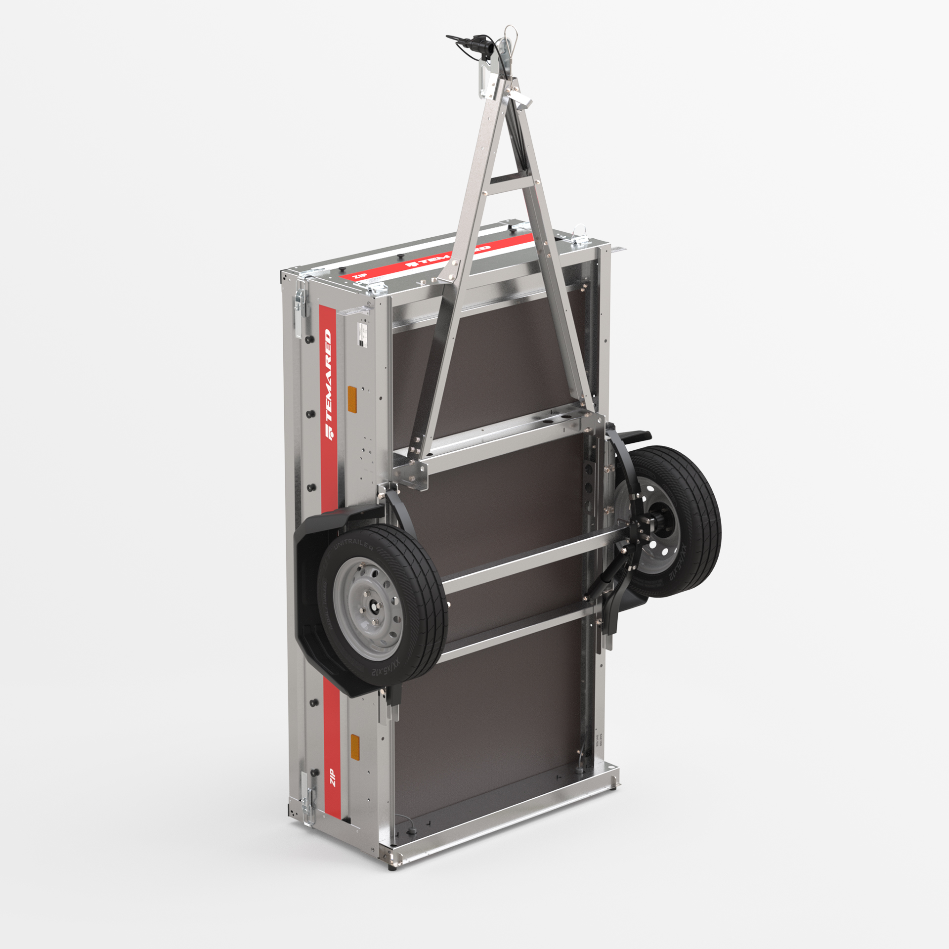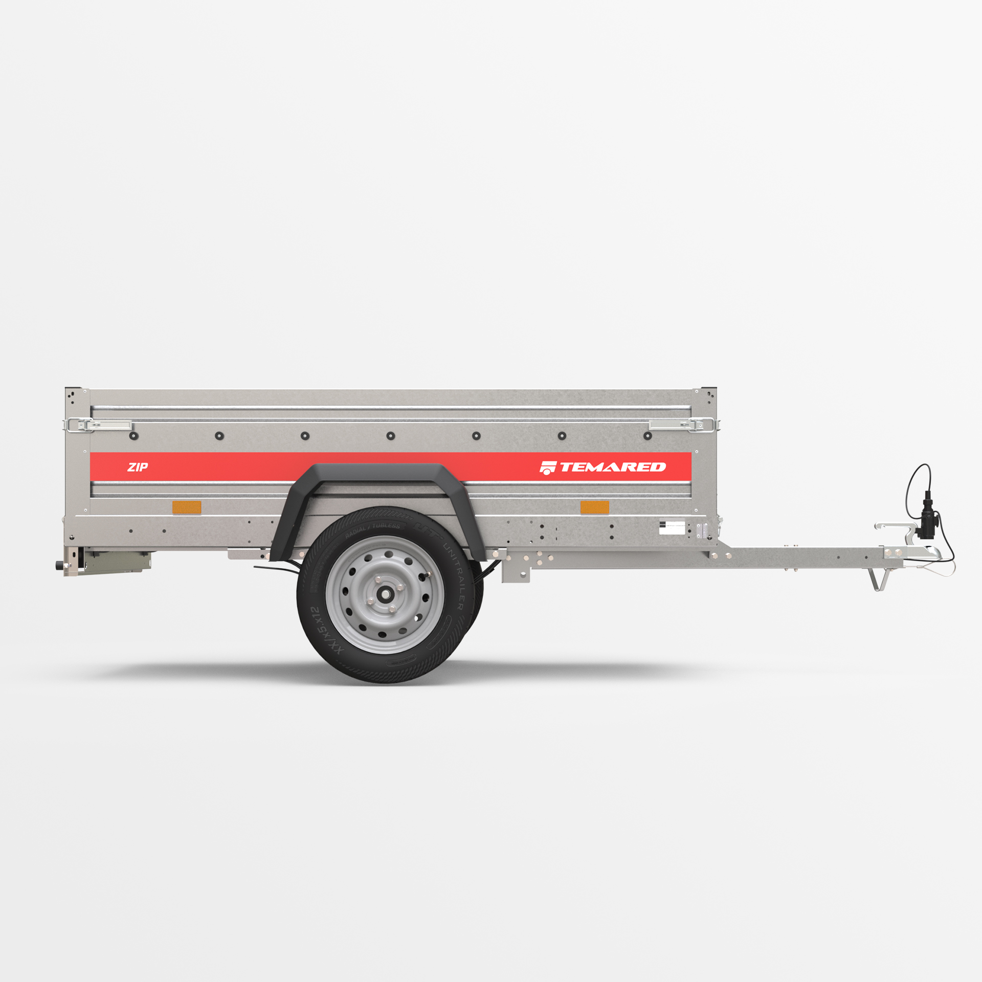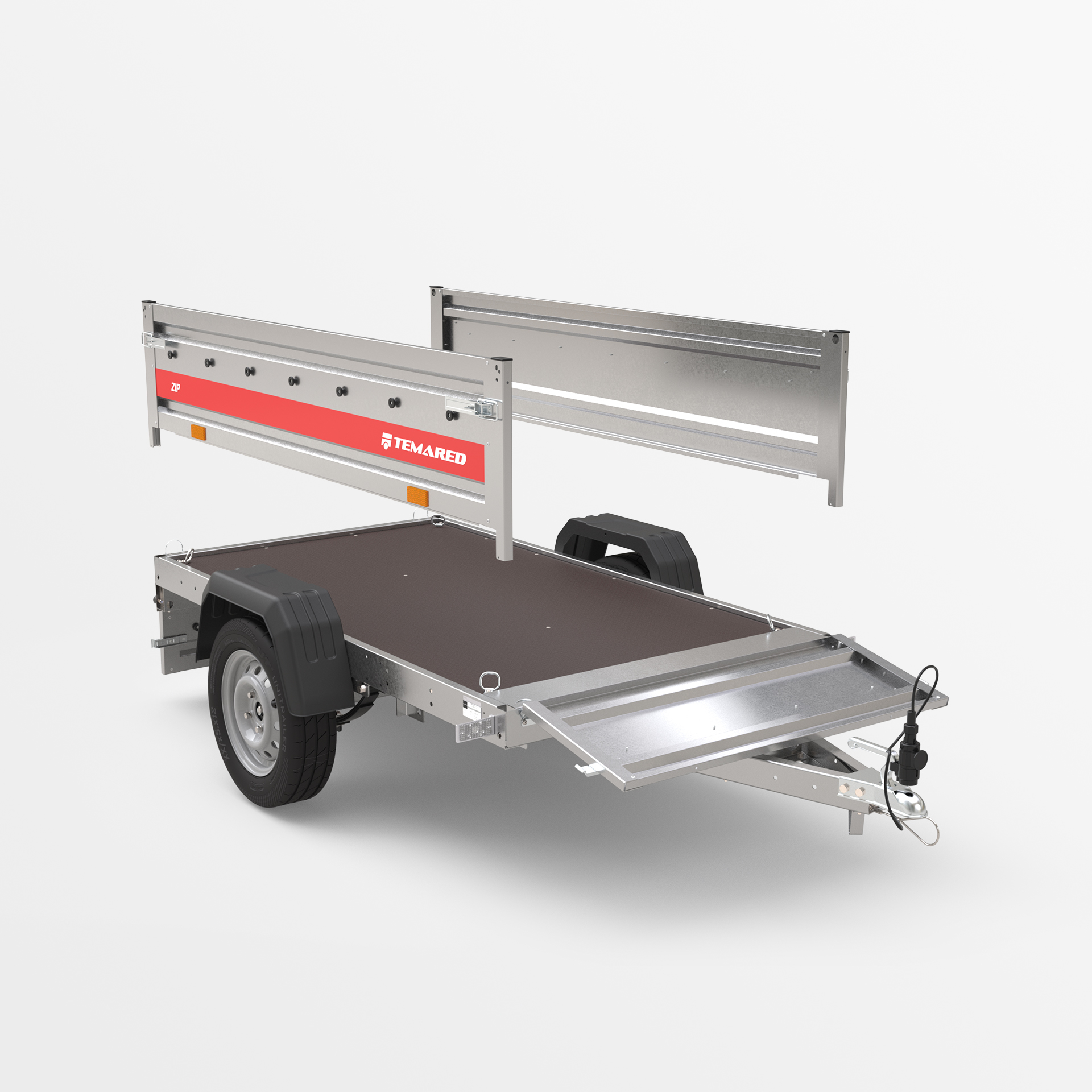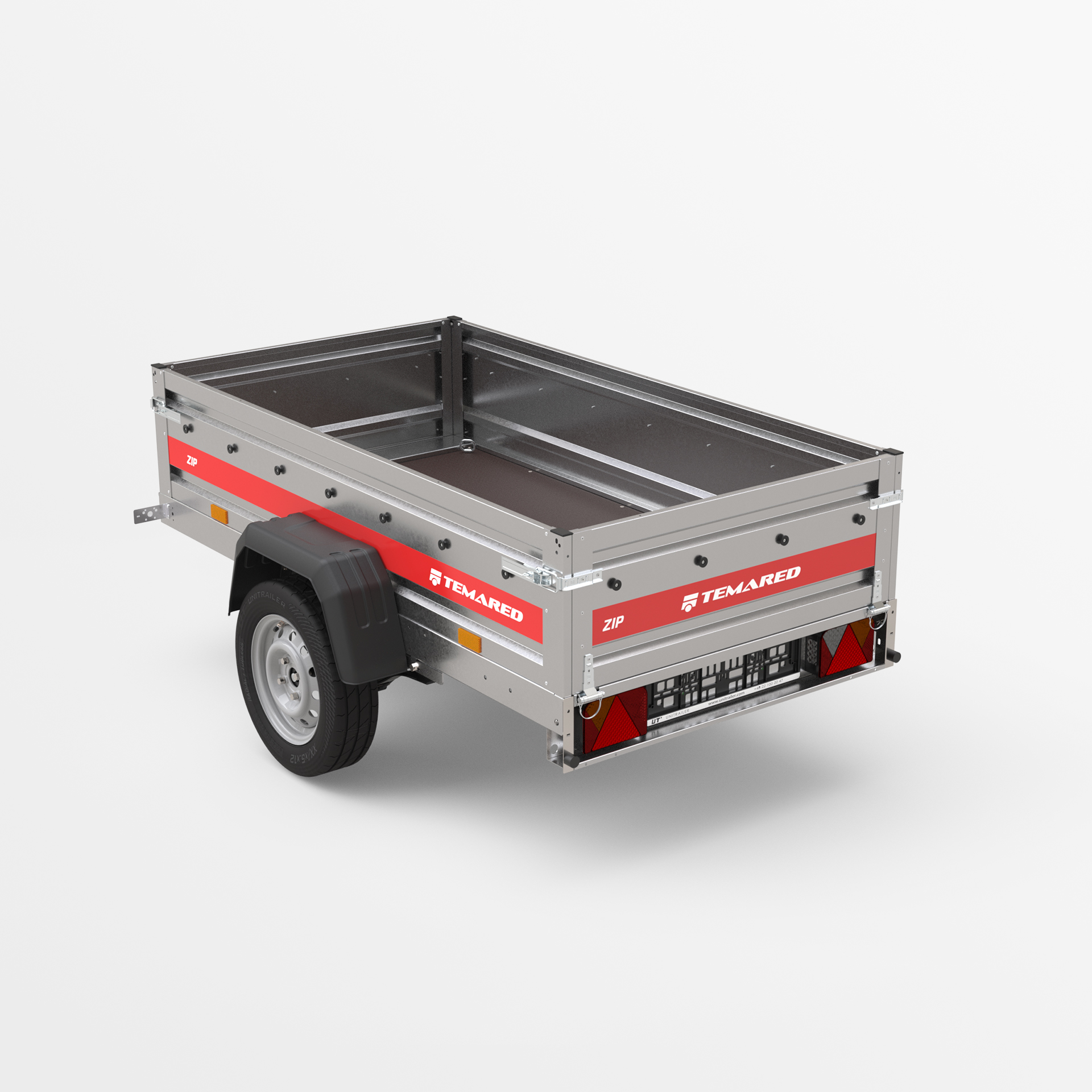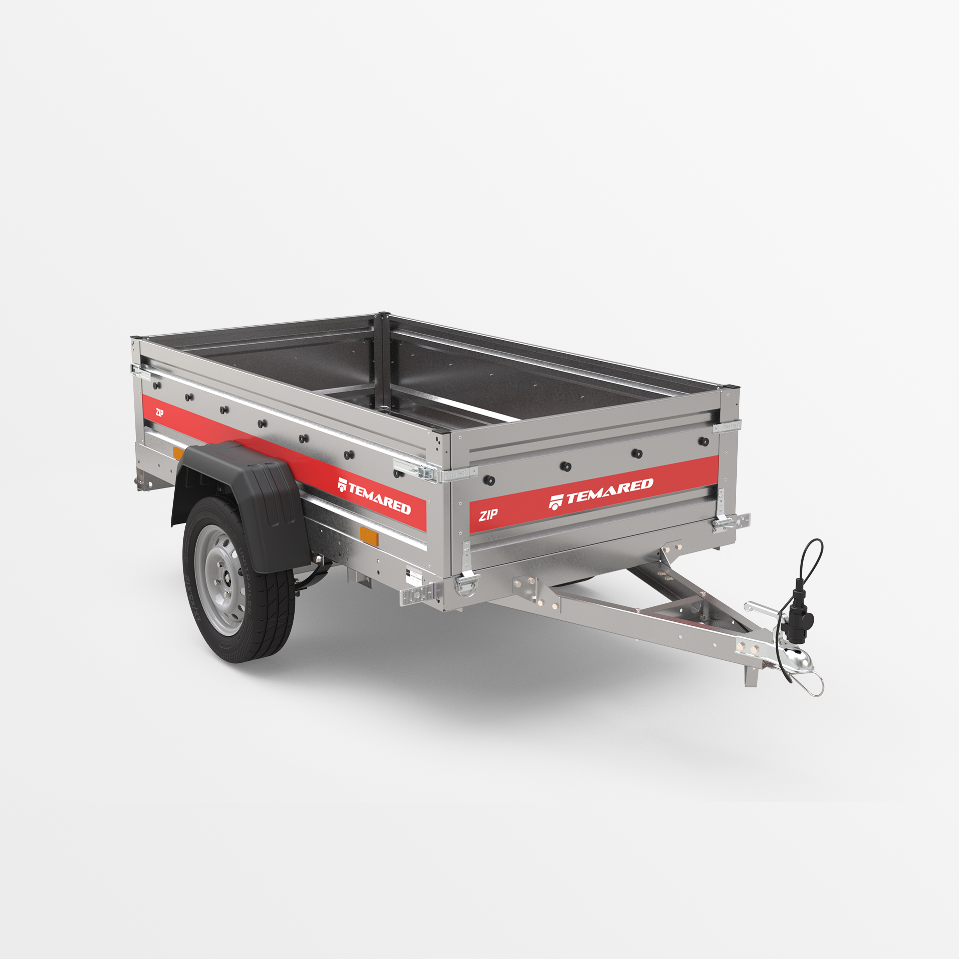 Transportanhänger, der für den sicheren Transport verschiedener Lasten konzipiert wurde. Mit einer 40 cm hohen Bordwand sowie klappbaren vorderen und hinteren Bordwänden wird das Be- und Entladen schnell und bequem. Die geschweißte Konstruktion sorgt für hohe Haltbarkeit, während die kippbare Deichsel den Nutzungskomfort verbessert. Anschläge am hinteren Rahmen ermöglichen eine stabile Positionierung des Anhängers auf der hinteren Bordwand, sodass er beim Lagern nur wenig Platz benötigt.