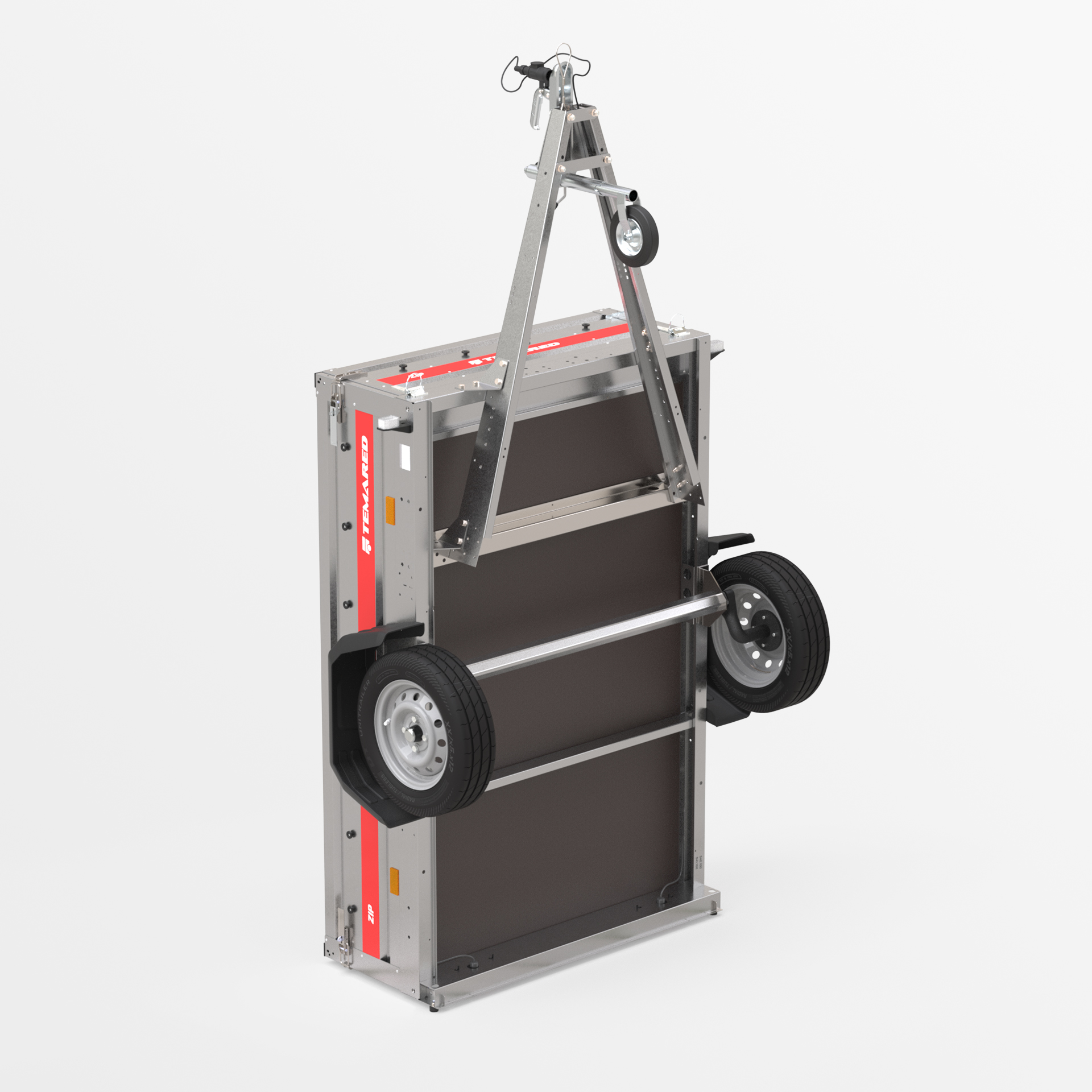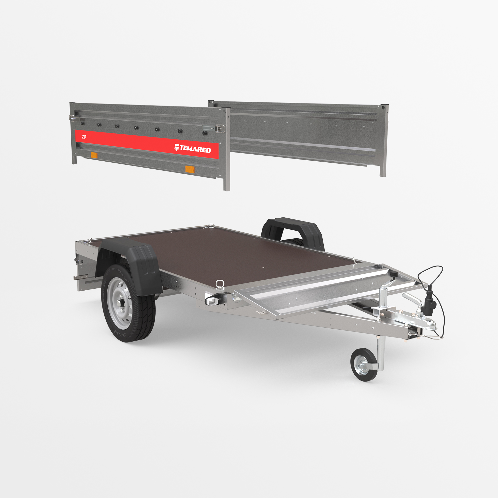 Transportanhänger, der für den sicheren Transport verschiedener Lasten konzipiert wurde. Mit einer 40 cm hohen Bordwand sowie klappbaren vorderen und hinteren Bordwänden wird das Be- und Entladen schnell und bequem. Die geschweißte Konstruktion sorgt für hohe Haltbarkeit, während die kippbare Deichsel den Nutzungskomfort verbessert. Anschläge am hinteren Rahmen ermöglichen eine stabile Positionierung des Anhängers auf der hinteren Bordwand, sodass er beim Lagern nur wenig Platz benötigt.