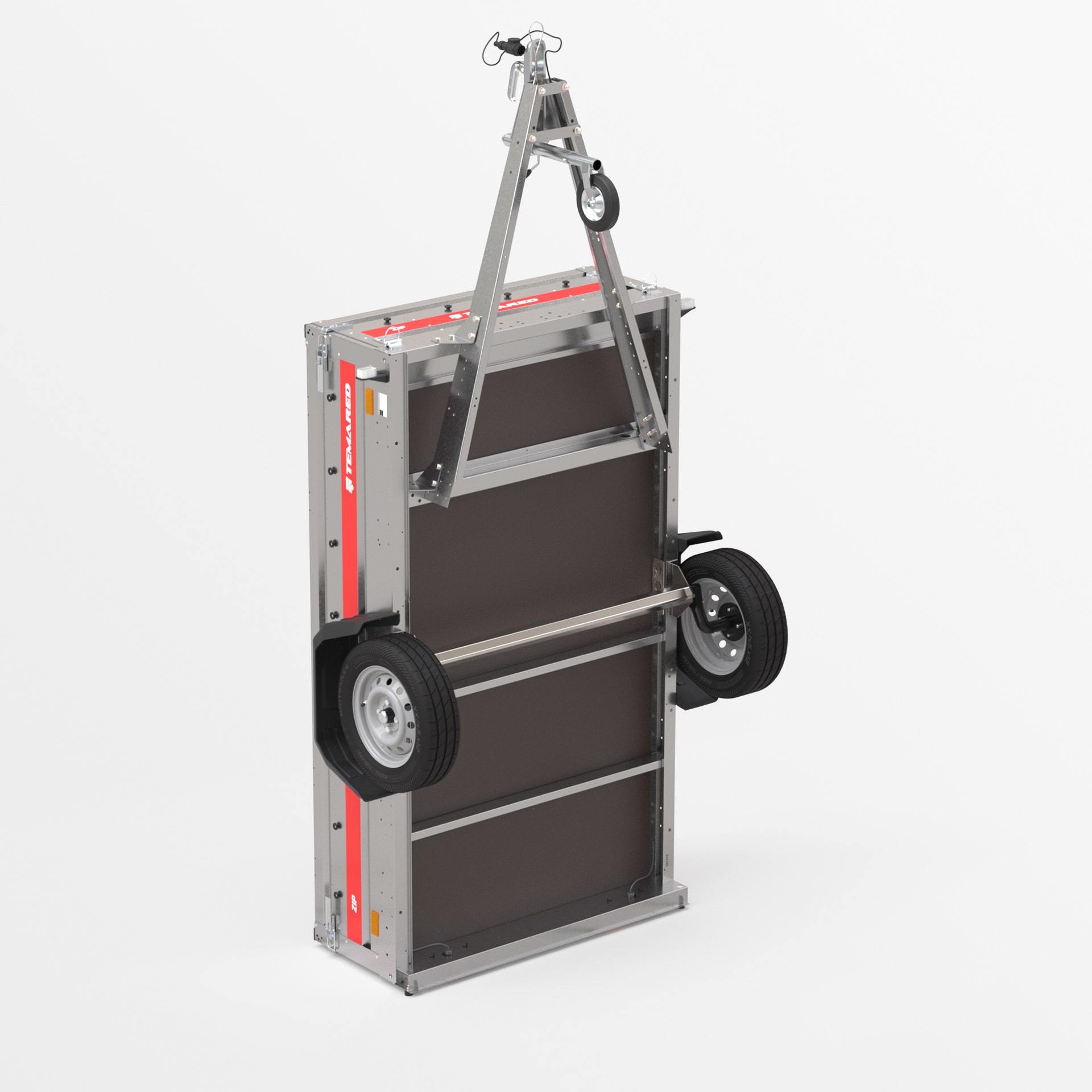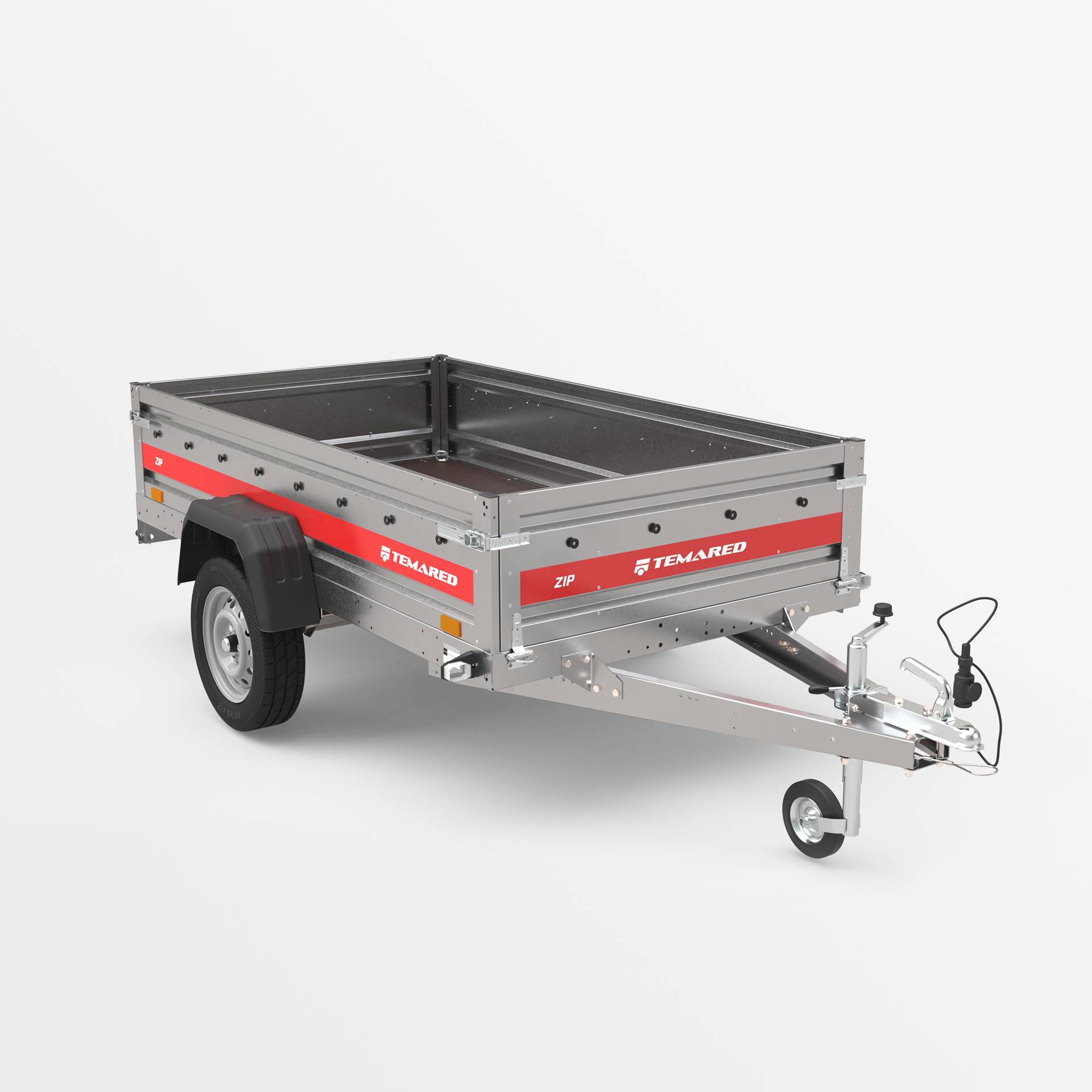 Transportanhänger, der für den sicheren Transport verschiedener Lasten konzipiert wurde. Mit einer 40 cm hohen Bordwand sowie klappbaren vorderen und hinteren Bordwänden wird das Be- und Entladen schnell und bequem. Die geschweißte Konstruktion sorgt für hohe Haltbarkeit, während die kippbare Deichsel den Nutzungskomfort verbessert. Anschläge am hinteren Rahmen ermöglichen eine stabile Positionierung des Anhängers auf der hinteren Bordwand, sodass er beim Lagern nur wenig Platz benötigt.