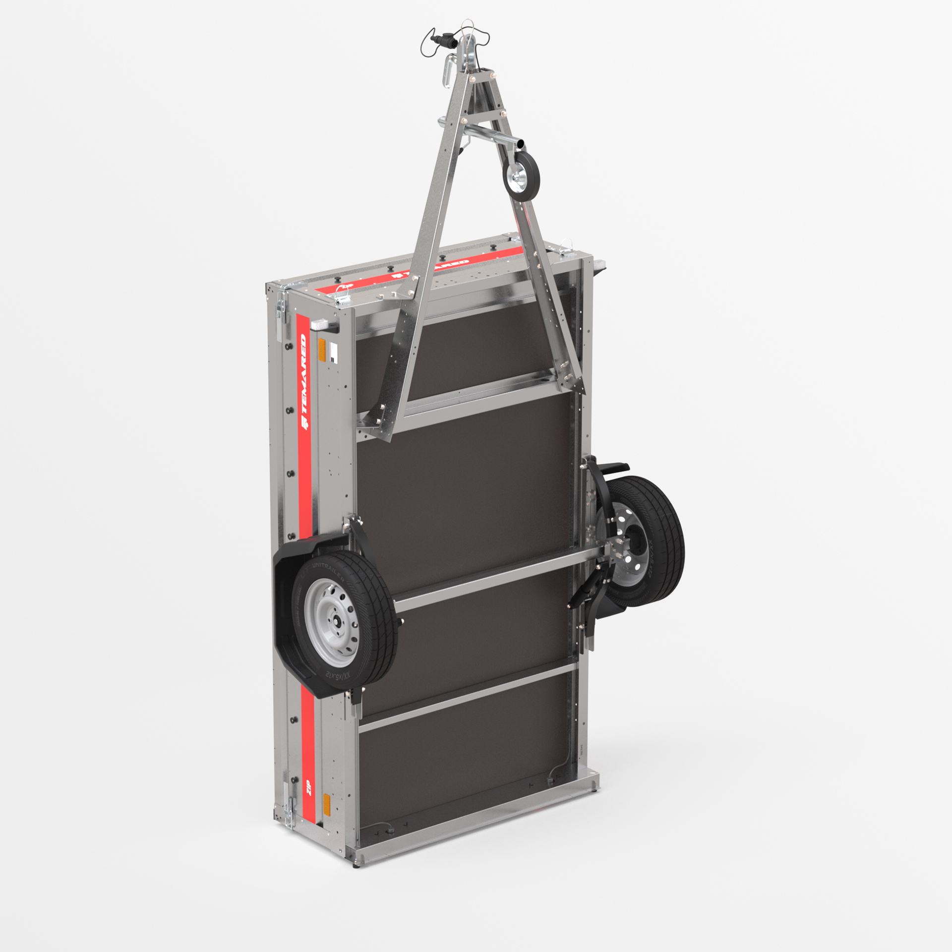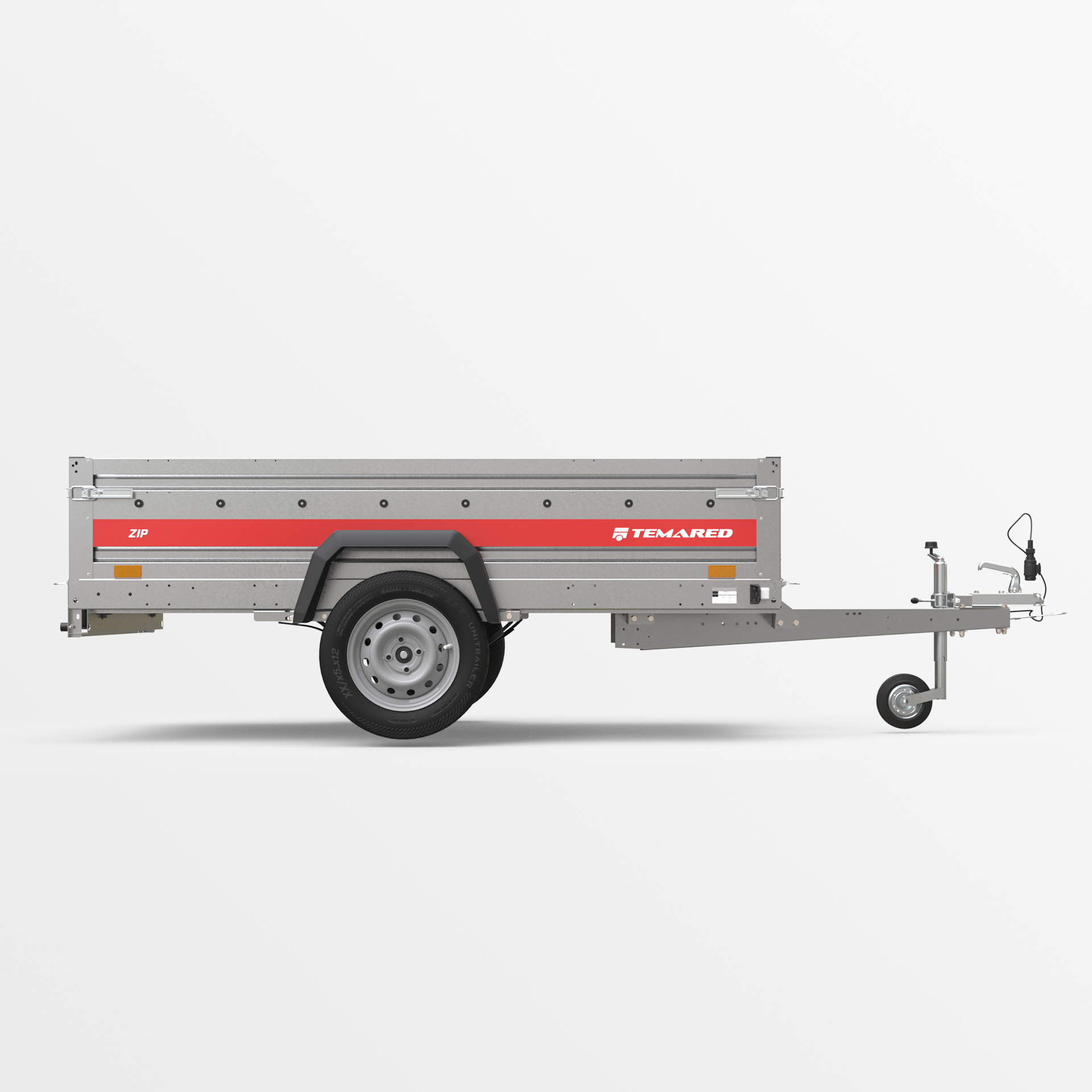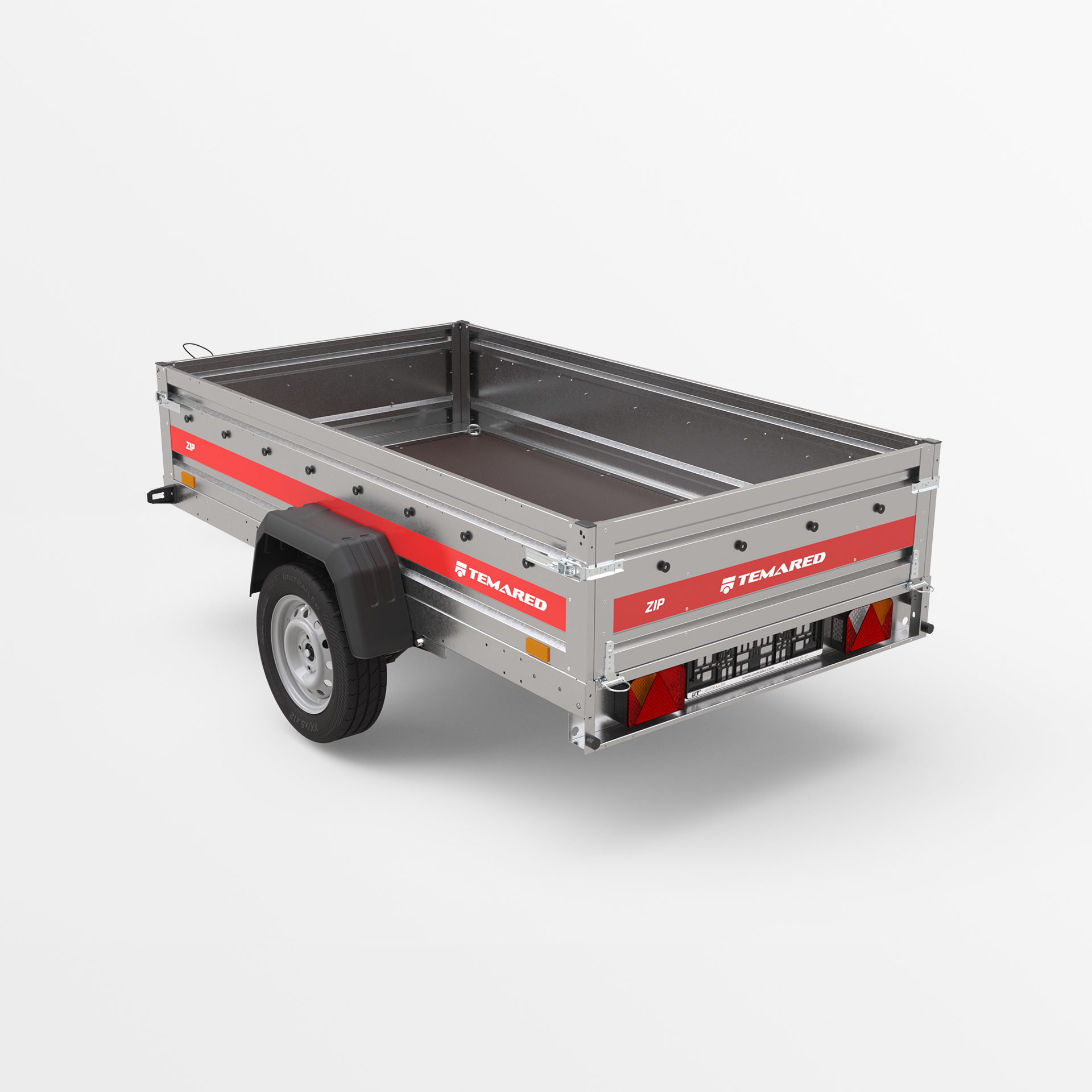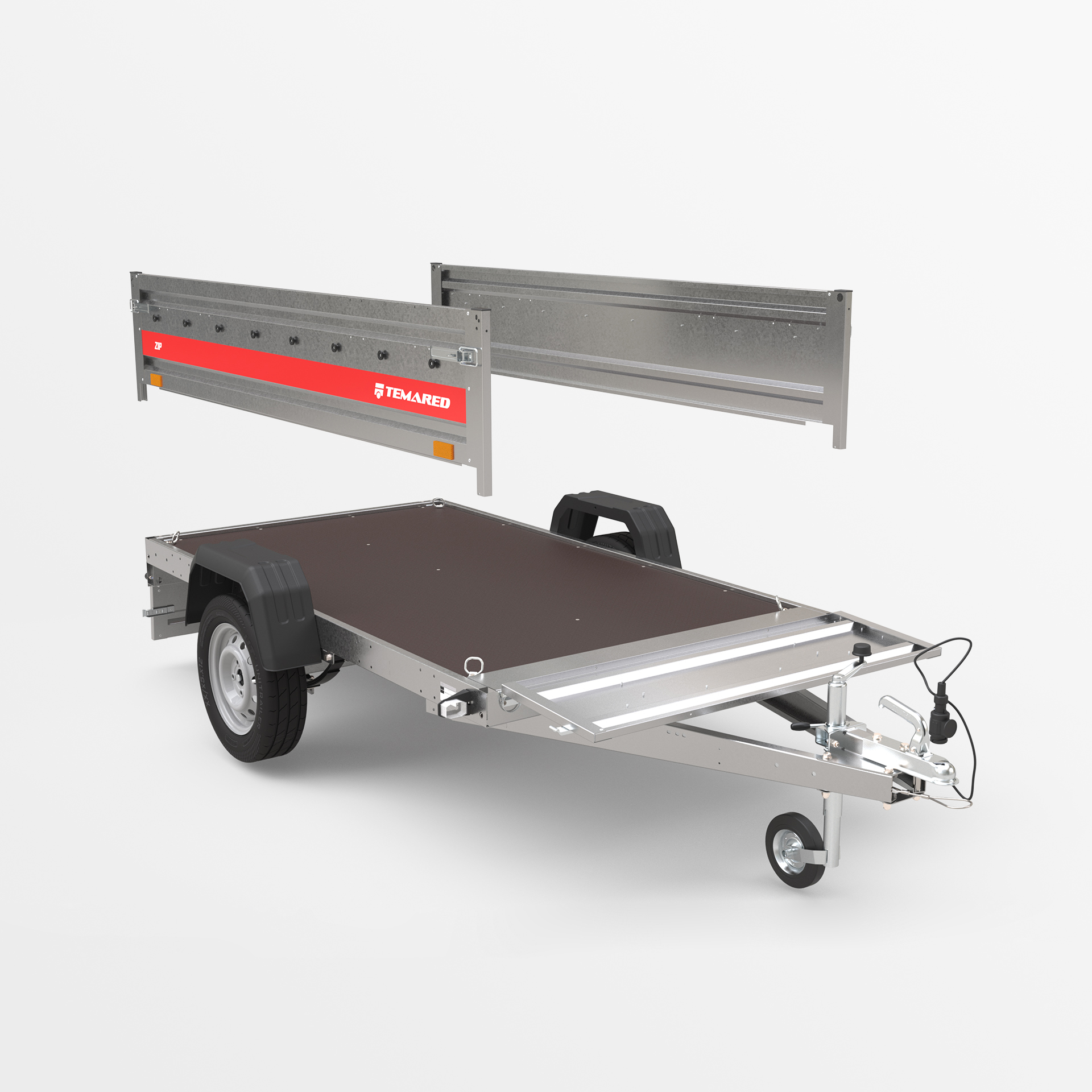 Transportanhänger, der für den sicheren Transport verschiedener Lasten konzipiert wurde. Mit einer 40 cm hohen Bordwand sowie klappbaren vorderen und hinteren Bordwänden wird das Be- und Entladen schnell und bequem. Die geschweißte Konstruktion sorgt für hohe Haltbarkeit, während die kippbare Deichsel den Nutzungskomfort verbessert. Anschläge am hinteren Rahmen ermöglichen eine stabile Positionierung des Anhängers auf der hinteren Bordwand, sodass er beim Lagern nur wenig Platz benötigt.