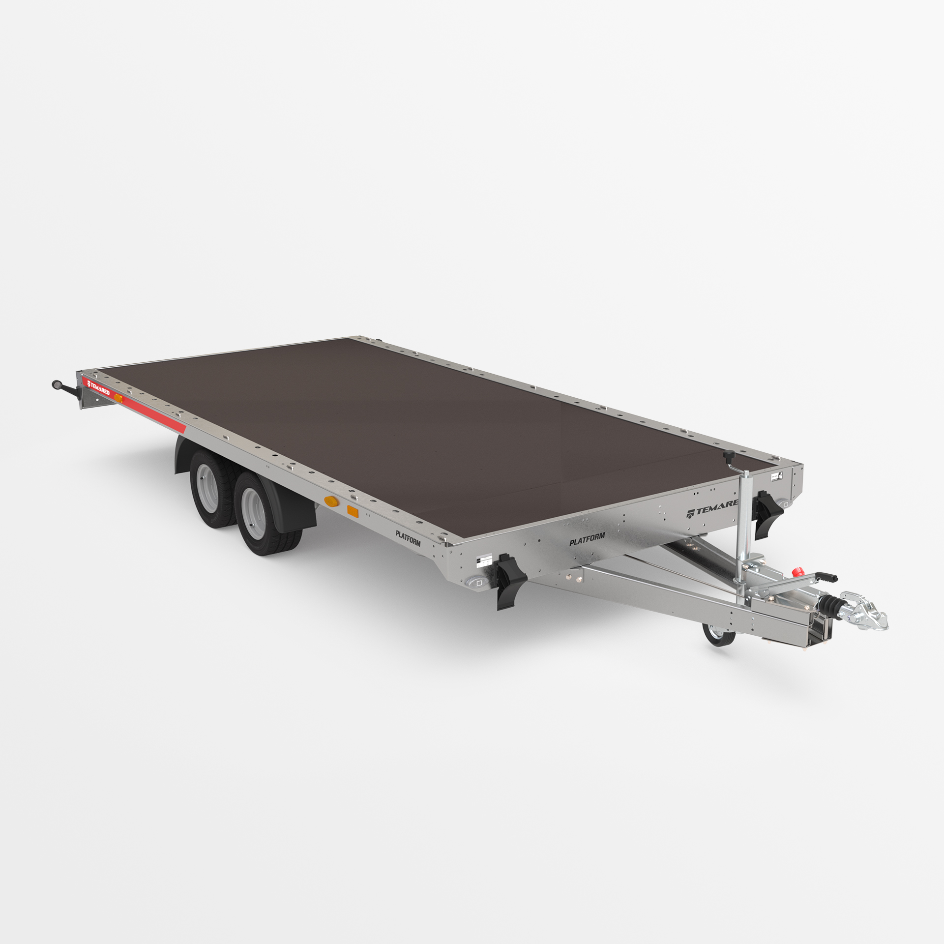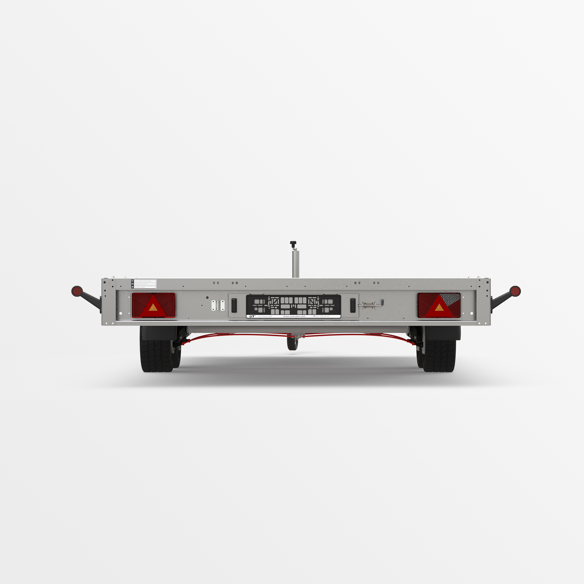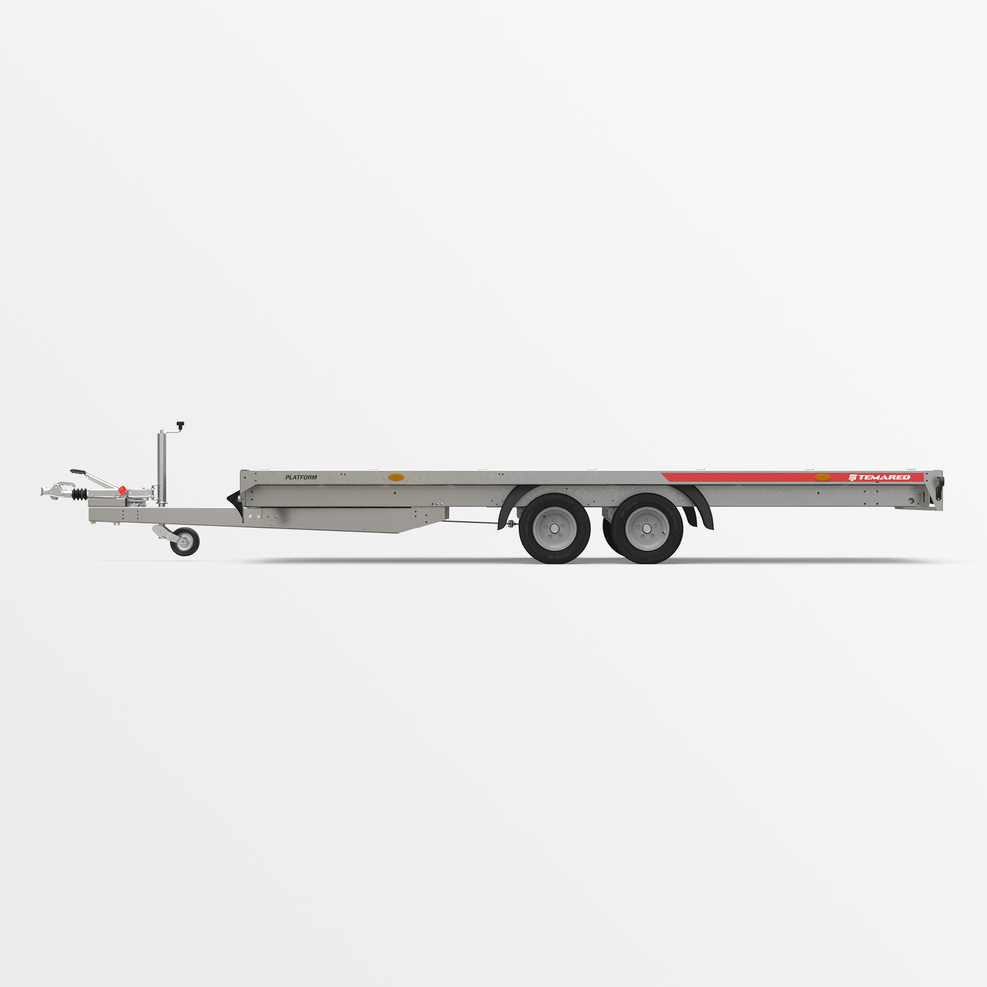 A universal flat platform equipped with an automatic jockey wheel, waterproof anti-slip plywood, and tie-down points integrated into the longitudinal beams. The low loading height ensures a convenient, stable, and safe loading and transport process. Available in many different sizes and with optional additional equipment.