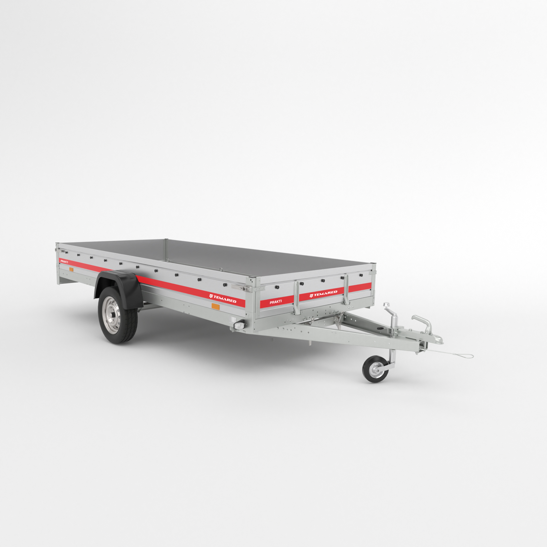Remorque a bagages robuste et non freinée pour les professionnels avec barre d'attelage inclinable pour faciliter le déchargement des marchandises en vrac, par exemple. Châssis en profilés pliés en acier galvanisé boulonnés entre eux. Plancher en contreplaqué antidérapant imperméable. La remorque vide peut etre stockée a l'arriere pour gagner de la place dans le garage.