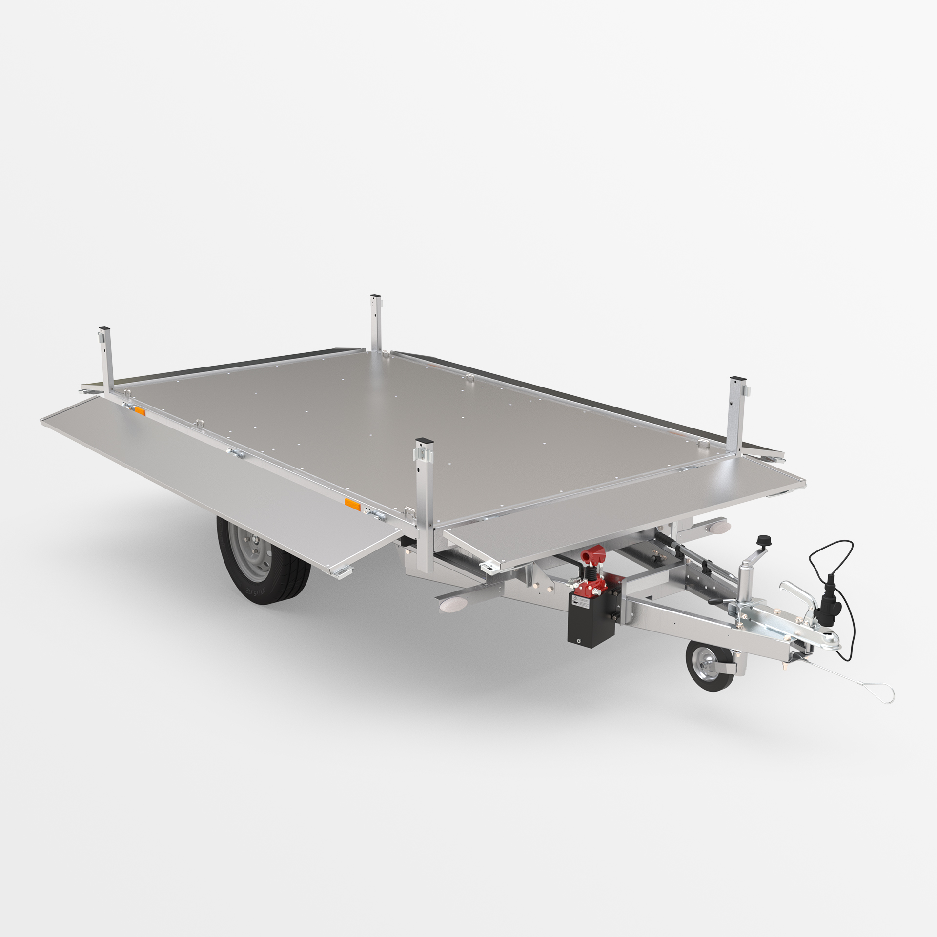 Model przyczepy wywrotki posiada ramę wykonaną z profili zamkniętych, spawaną i cynkowaną ogniowo. Wyposażona jest w aluminiowe burty o wysokości 30 cm, które można otworzyć i zdemontować, stalową podłogę oraz sześć punktów mocowania ładunku. Konstrukcja umożliwia wywrot pod kątem 44°.