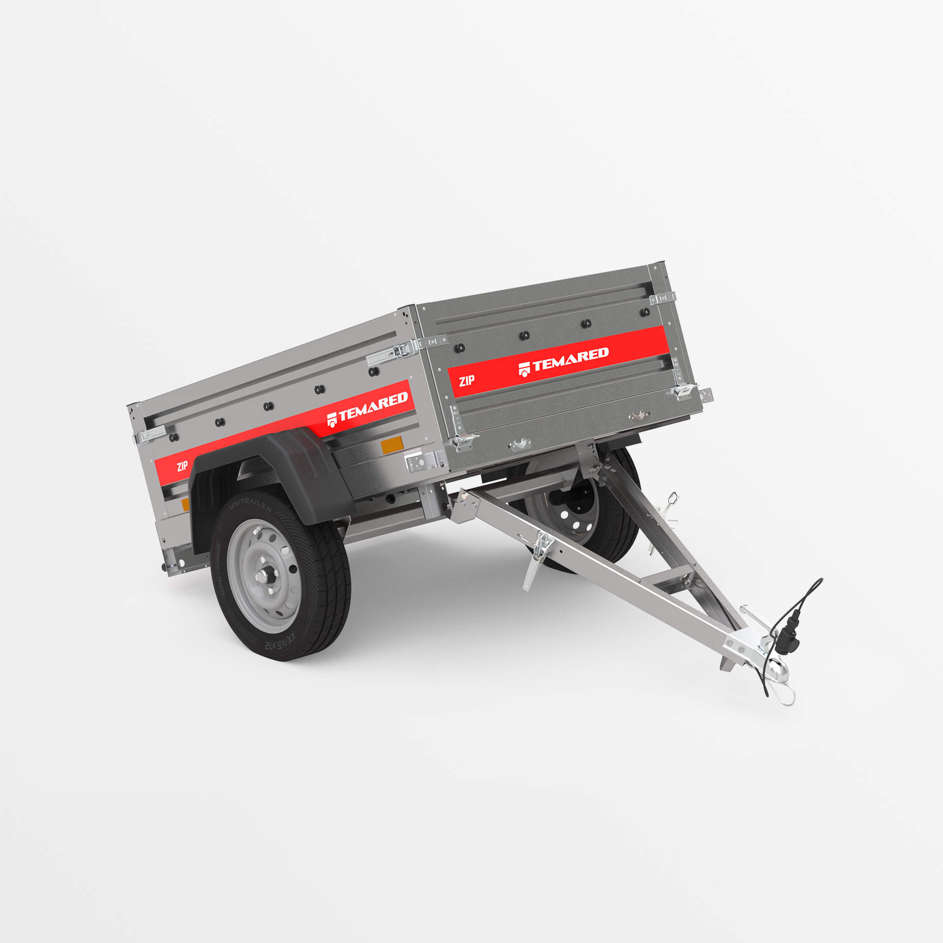 ZIP Przyczepa transportowa, zaprojektowana z myślą o bezpiecznym przewozie różnorodnych ładunków. Dzięki burcie o wysokości 40 cm oraz uchylnym burtom przednim i tylnym, załadunek i rozładunek stają się szybkie i wygodne. Spawana konstrukcja zapewnia wysoką trwałość, a uchylny dyszel poprawia komfort użytkowania. Odboje na tylnej ramie zapewniają stabilne ustawienie przyczepy na tylnej burcie, dzięki czemu zajmuje ona niewielką przestrzeń podczas przechowywania.